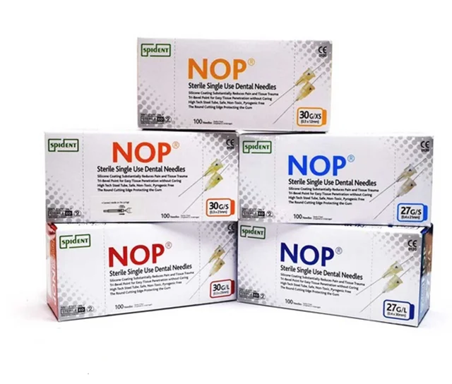 سر سوزن دندانپزشکی nop یکی از تجهیزات مصرفی در امور دندان پزشکی است که به منظور تزریق داروهای بی حس کننده جهت ارتودنسی، درمان ریشه، ترمیم های بافتی و … درون لثه تزریق می شود. معمولاً این سر سوزن ها از استنلس استیل ساخته می شوند. که دو سمت آن ها کاملا بر اساس  استانداردهای بین المللی برش داده می شوند. به طور کلی سر سوزن دندانپزشکی  NOP از چهار قسمت سوزن Needle، هاب Hub و دو کاور Cover تشکیل شده است. دو  سر کانولای این سر سوزن ها بسیار تیز بوده و روی هاب آن ها علامتی به شکل  مثلث وجود دارد که نشان دهنده جهت تیزی سوزن می باشد.