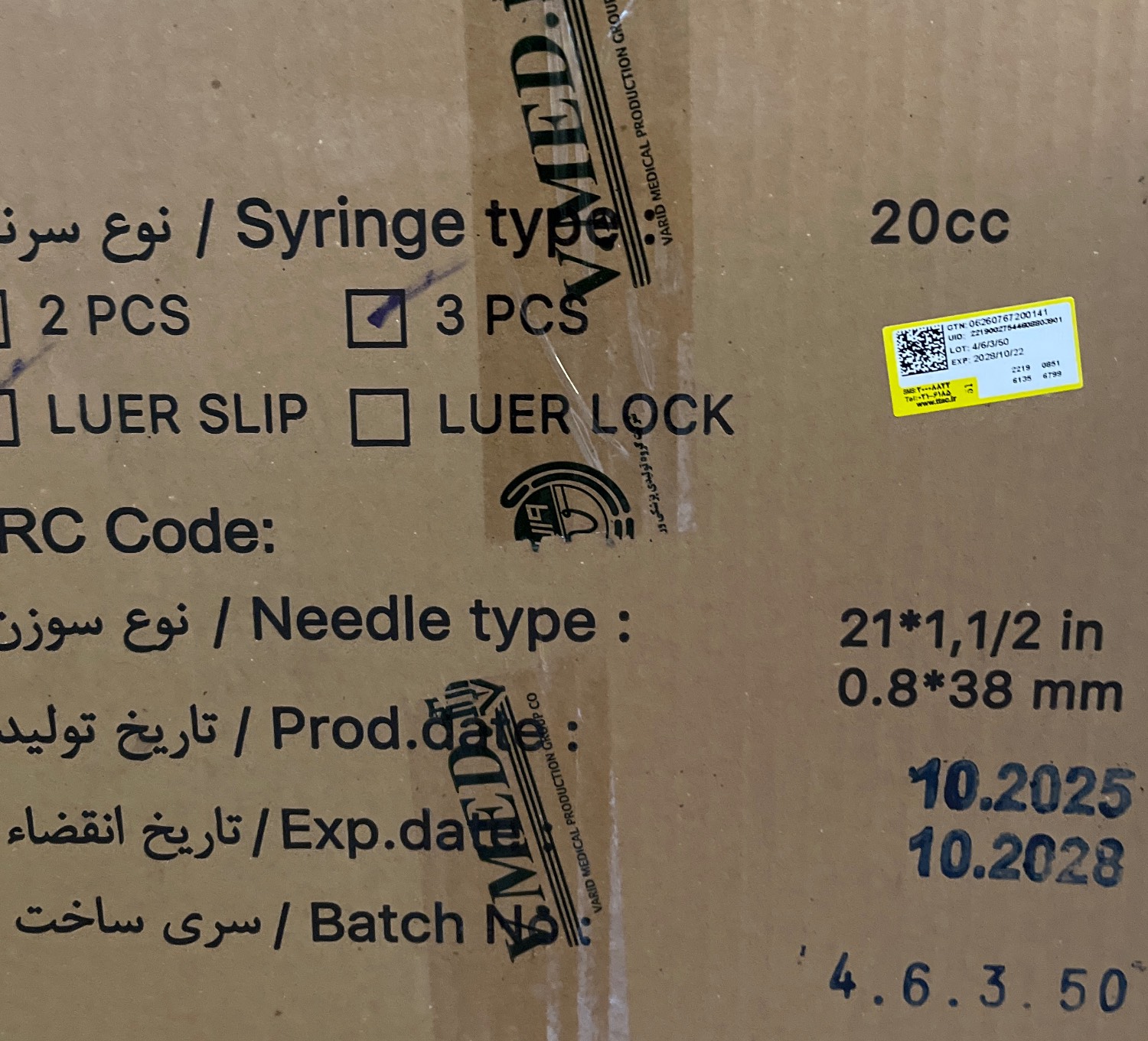 سرنگ 20 سی سی سه تکه لوئراسلیپ ورید