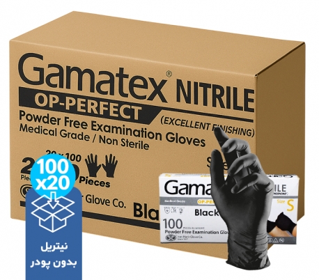 دستکش نیتریل بدون پودر Gamatex Black - کارتن 20 بسته ایی